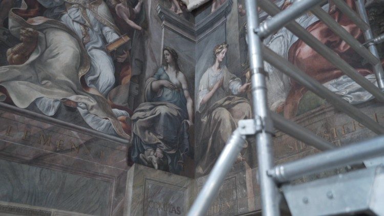 „Die Eigentümlichkeit der beiden Raffael-Figuren liegt an der eingesetzten Technik“, heißt es in einem Statement des Vatikans von diesem Sonntag. Raffael habe eine dünne weiße Gipsschicht auf die Wand aufgetragen und darauf dann in Öl gemalt.