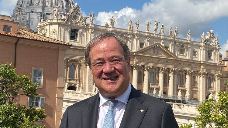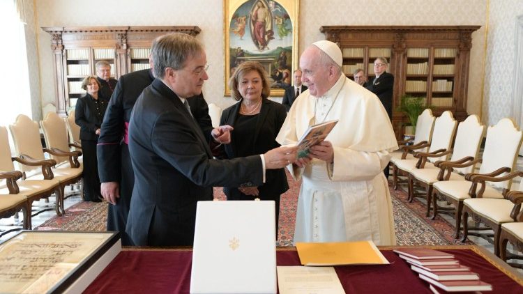 „Wir haben den Papst auch eingeladen, im kommenden Jahr nach Deutschland – nach Nordrhein-Westfalen zu kommen. Es gibt unterschiedliche Anlässe, die für ihn eine Gelegenheit sein könnten. Wir begehen zum Beispiel in Aachen die Heiligtumsfahrt, die alle sieben Jahre stattfindet, entstanden 1349 aus einem Pestgelübde…“ Laschet kommt aus Aachen und war, bevor er in die Politik ging, Chefredakteur der diözesanen Kirchenzeitung.