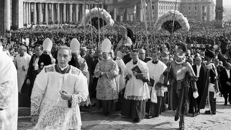 Konzilsväter strömen am 11. Oktober 1962 zur Eröffnung des Konzils in den Petersdom Konzilsväter strömen am 11. Oktober 1962 zur Eröffnung des Konzils in den Petersdom