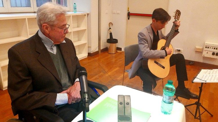 Für viele der Anwesenden im Goethe-Institut war es eine besondere Freude, wieder einmal Parmeggianis charakteristische Stimme zu hören. Meisterlich trug der 84-Jährige Texte wie Goethes „Erlkönig“ oder Rilkes „Herbsttag“ vor. Der Musiker Leonardo Fanti, Dozent an der römischen Akademie „Caput Mundi“, setzte zwischendurch mit nachdenklichen Gitarrensolos einen eigenen Akzent.