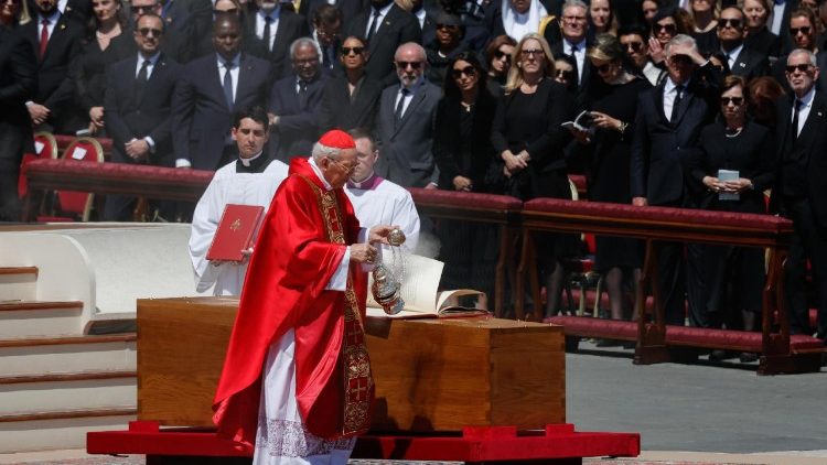 Nach einem stillen Moment der Andacht wurde der Sarg des Papstes noch einmal mit Weihwasser besprengt und Gott um die Aufnahme des Verstorbenen in sein ewiges Reich gebeten. Dazu erklang der Hymnus „In paradisum deducant te Angeli“: „Zum Paradies mögen Engel dich geleiten“.