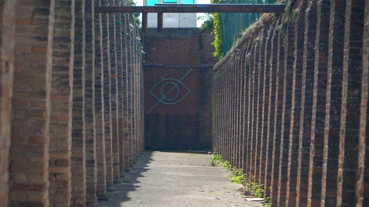 Detail des in der Haftanstalt von Giudecca installierten Vatikanpavillons Detail des in der Haftanstalt von Giudecca installierten Vatikanpavillons  (@VaticanNews)