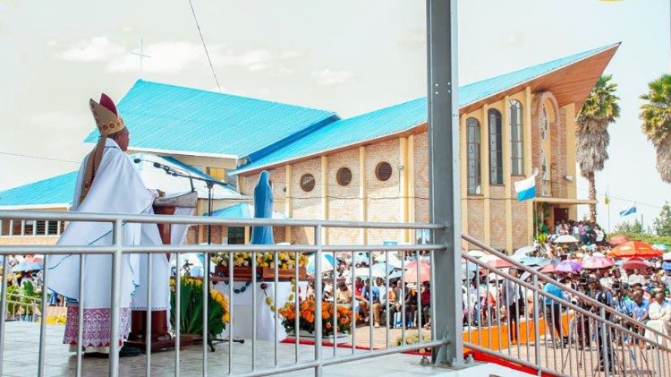 The lush, mountainous village of Kibeho is renowned as the site where the Blessed Virgin Mary appeared in the 1980s to adolescents Alphonsine Mumureke, Nathalie Mukamazimpaka, and Marie Claire Mukangango. This Sunday, Kibeho was alive with Marian pomp and festivities, marked by a lively choir, children’s liturgical dancing. It was a convivial atmosphere stamped by the presence of many young pilgrims. In total, approximately 25,000 people gathered.