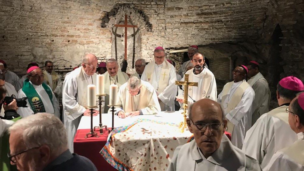 More than 50 years later, the legacy of those Council Fathers was taken up by a group of participants in the Synod of Bishops for the Pan-Amazon region, which is focused on the theme “New paths for the Church and for an integral ecology”. Cardinal Claudio Hummes, the General relator for the Synod, presided at Mass in the catacombs, after which the Synod Fathers present signed a new “Pact of the Catacombs for the Common Home. For a Church with an Amazonian face, poor and servant, prophetic and Samaritan”.