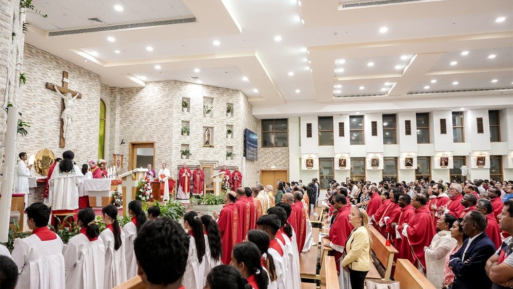 The Apostolic Vicar of Southern Arabia, Bishop Paolo Martinelli, OFM Cap., presided over the Mass as part of the Extraordinary Jubilee proclaimed in the Apostolic Vicariates of Northern and Southern Arabia for the occasion.
