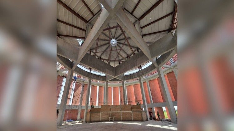A view inside the under-construction Divine Mercy Chapel, showcasing its circular design and high ceilings that optimize natural light and airflow. Photo: