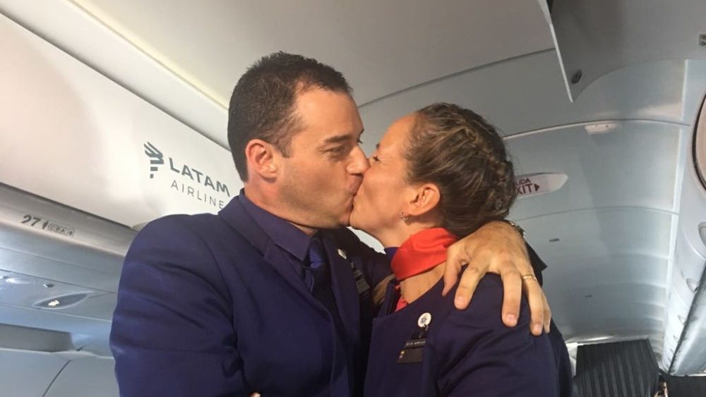 The newly-weds - Paula Podest Ruiz and Carlos Ciuffardi Elorriaga - are flight attendants for LATAM and met 8 years ago aboard a plane.