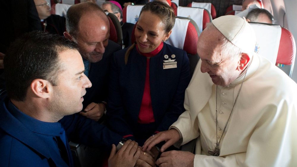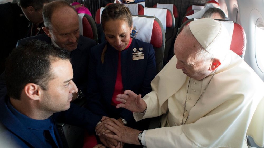 Pope Francis performs marriage ceremony aboard plane in Chile