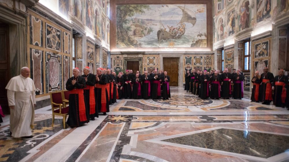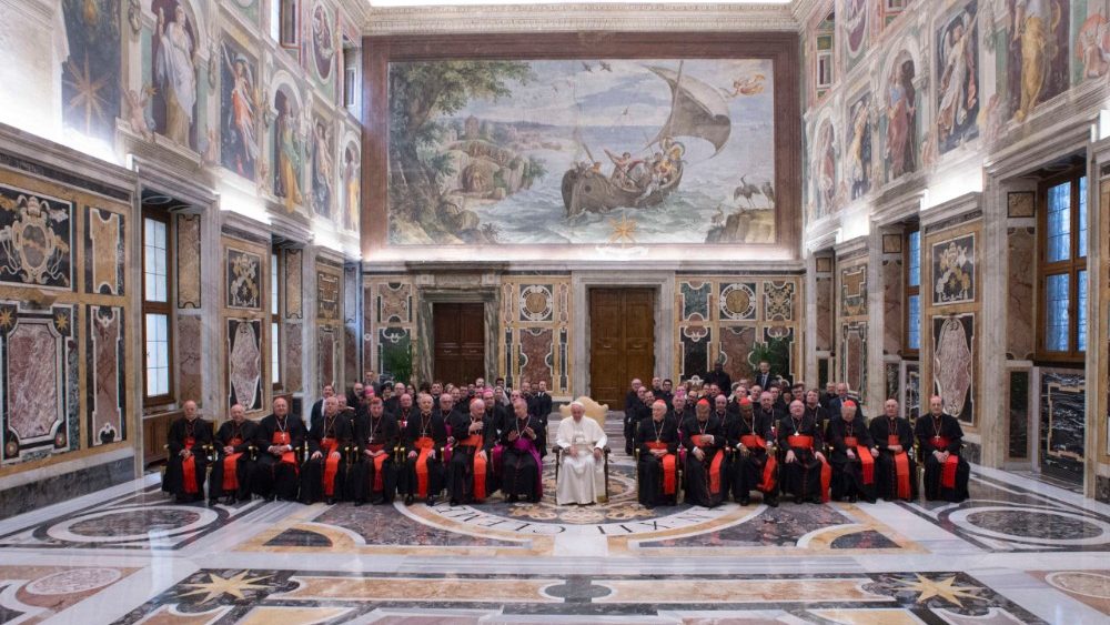 The Holy Father thanked them, too, for their commitment to supporting the magisterium of the Bishops “in defence of the faith and of the sanctity of the Sacraments” with regard to current questions requiring great “pastoral discernment.” In particular, the Pope mentioned the work of examining cases concerning “graviora delicta” (more serious crimes, such as clerical sexual abuse or grave abuses of the Sacraments), and questions of the dissolution of marriages “in favour of the faith” (the so-called “Petrine privilege”).