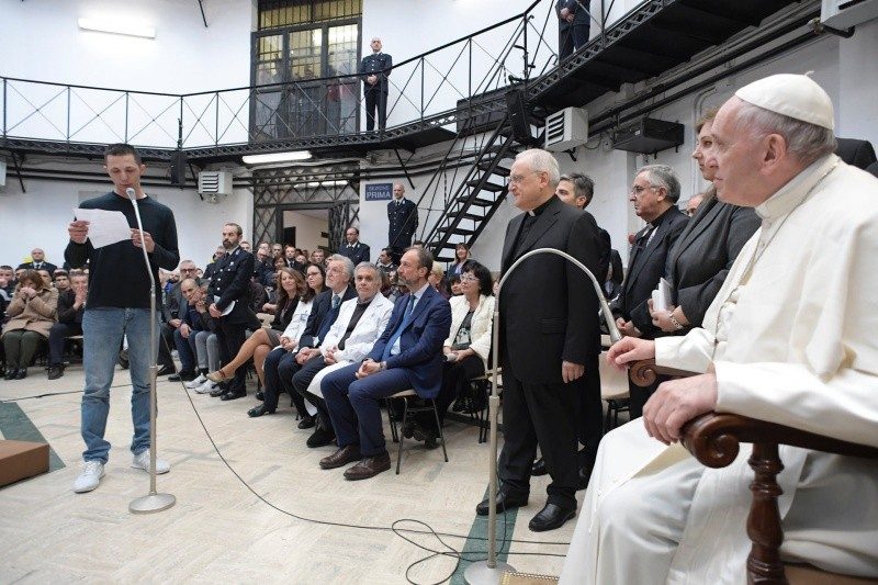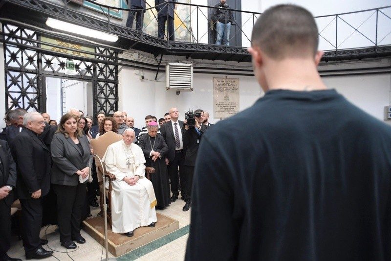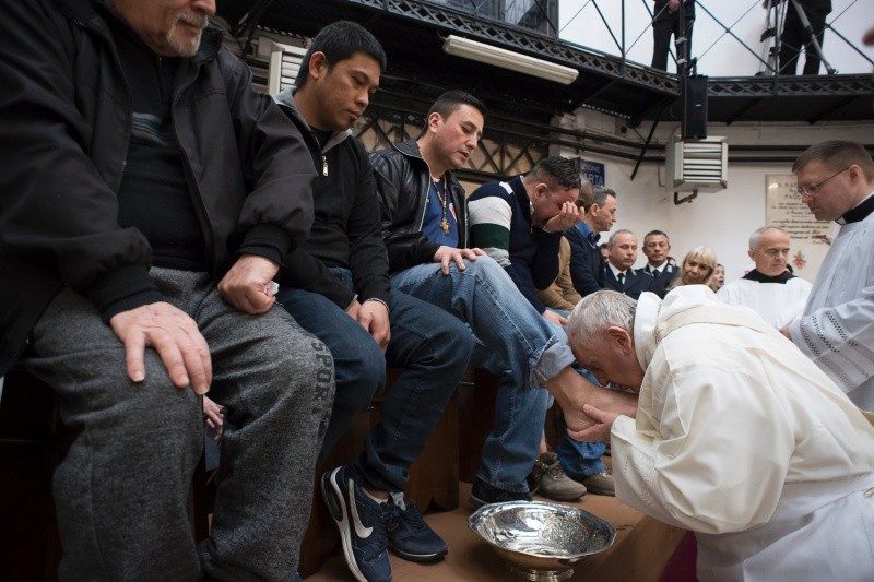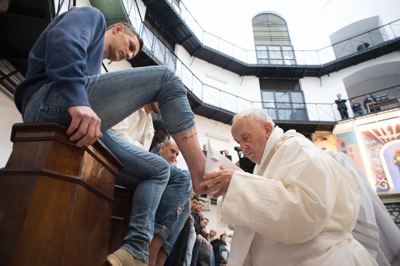 Pope Francis, speaking off the cuff during his homily during the Mass of the Lord's Supper at Regina Coeli prison, contextualized the Gospel passage from John in which Jesus washes his disciples’ feet.