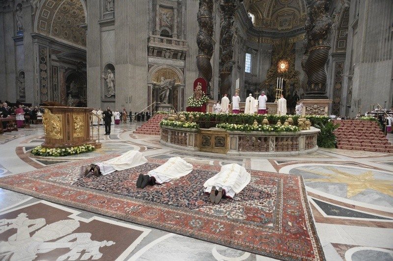 Pope Francis departed from this text after it reminds those about to be ordained that they have “been chosen by the Lord…chosen from among men and appointed on their behalf for those things that pertain to God.” Pope Francis added that they have “not been chosen for other things; for other business; not for worldliness; not for politics.” And he asked them to “flee from the temptation of becoming princes."