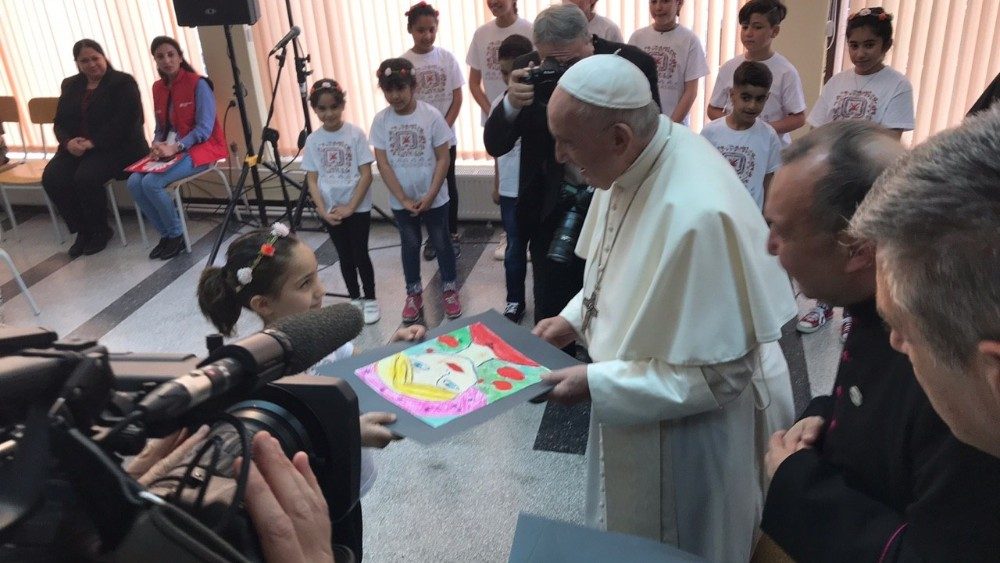 The children who were present in the Centre come from Syria and Iraq.  After a brief greeting from a volunteer, a song performed by the children and the gift of the children's drawings to the Pope, the Holy Father greeted the families present and addressed a few brief words to them.