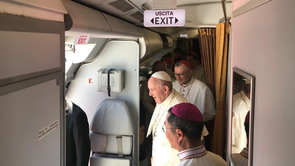 On the flight to Thailand, the first stage of his 32nd apostolic journey and the fourth to East Asia, the Pope greeted journalists on board saying, "Good evening, thank you for accompanying me on this journey, thank you for your work, it is so good for people to be informed, to know these cultures that are far from the West".