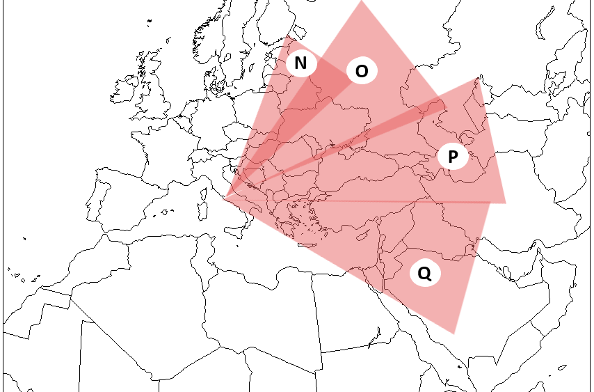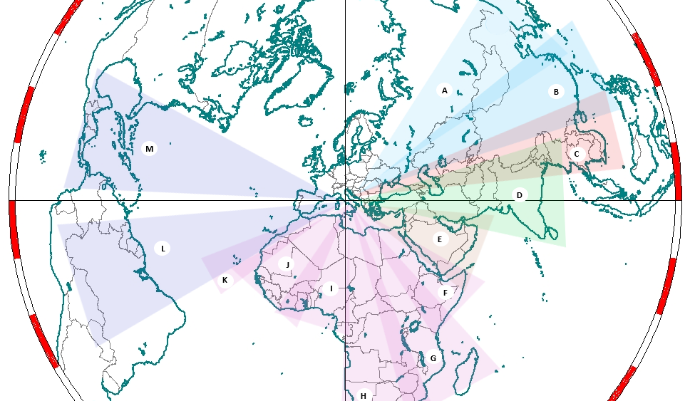 Capital letters following frequencies indicate the radiation direction of antennas from Santa Maria di Galeria