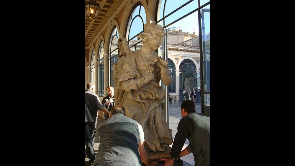 In the process, traces of whitewash were found on the five Bernini angel models. This is very probably the result of an 18th-century restoration undertaken when the works were gathered together and placed in Clement XI’s Museum of Models within the Vatican Tower of the Winds.