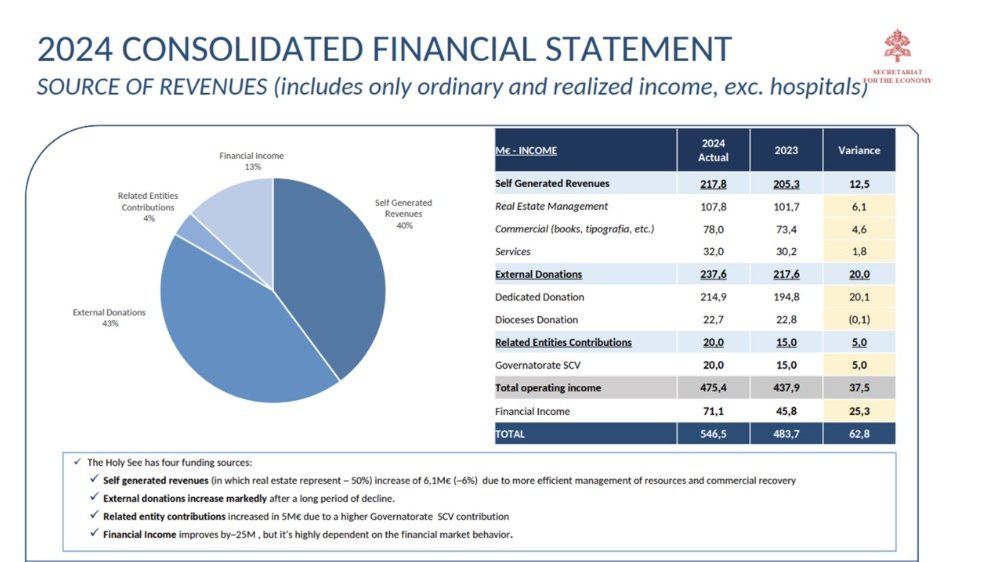 The Secretariat for the Economy has published the Holy See’s 2024 Consolidated Financial Statements, which show a surplus of 1.6 million euro.