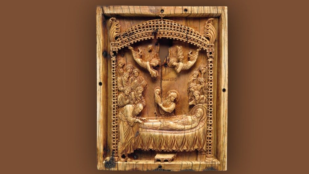 La figura de María es la imagen más representada en la historia, y no sólo en los círculos cristianos. Como todas las variantes que le conciernen, la iconografía de su muerte y asunción, descrita de varias maneras, goza de amplia difusión, una de las cuales, de origen oriental, representa el momento de la Dormición de María. El ejemplo más antiguo, que data del siglo VI y que proviene de Scitopoli, la actual Beth She-Sn, está estampado en una pieza de terracota. Es un panegírico, un objeto de devoción, donde María es representada acostada y rodeada por los apóstoles. Lamentablemente, el estado de conservación no permite un análisis más detallado.