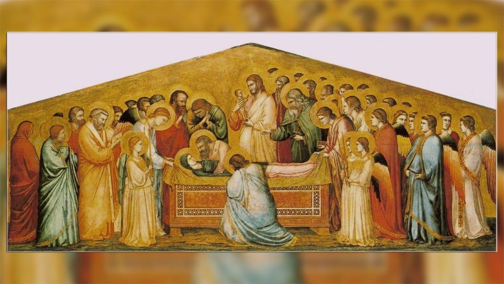 Hoy para la Iglesia es la fiesta de la Asunción, un misterio de fe que ha inspirado una iconografía única del ciclo artístico sobre la dormición, el tránsito y la ascensión corporal de la Virgen: la de una niña recién nacida, "el alma de María", llevado en sus brazos por su hijo Jesús.