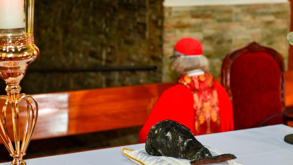 “Vemos a nuestra sangre de Cristo calcinada, pero de pie, la imagen y la cruz resistieron las fuerzas de las llamas como un testimonio para nosotros que la cruz no es vencida tan fácilmente, la cruz no se destruye tan fácilmente, por eso hoy les hago el llamado de estar aferrados a la cruz, al pie de la cruz como María y aquel pequeño grupo que le acompañaban.”