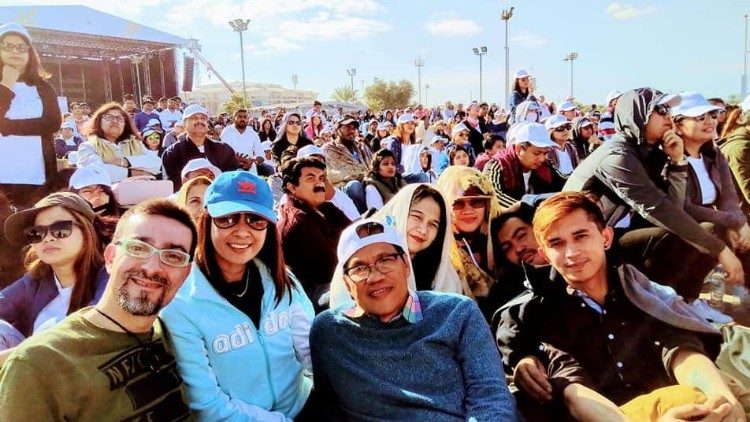 "Una magnífica experiencia, fui con algunos de mis colegas y amigos del Movimiento de los Focolares. Había tanta gente, tanto que yo estaba fuera del estadio, en el césped, desde donde se podía seguir el evento a través de pantallas gigantes. Noté que la gran mayoría de los presentes eran católicos, pero también había 5.000 musulmanes, así como algunos grupos de budistas, hindúes y sijs. Transmitieron imágenes del sincero abrazo con el Gran Imán de Al-Azhar Ahamad al-Tayyib. Fue un momento liberador, de encuentro entre el mundo islámico y el mundo occidental, con el Papa que vino aquí con gran humildad: agradeció al país, a las autoridades, al pueblo, en el espíritu de coexistencia, de paz, de tolerancia. Quería decirnos que estar todos juntos es posible".
