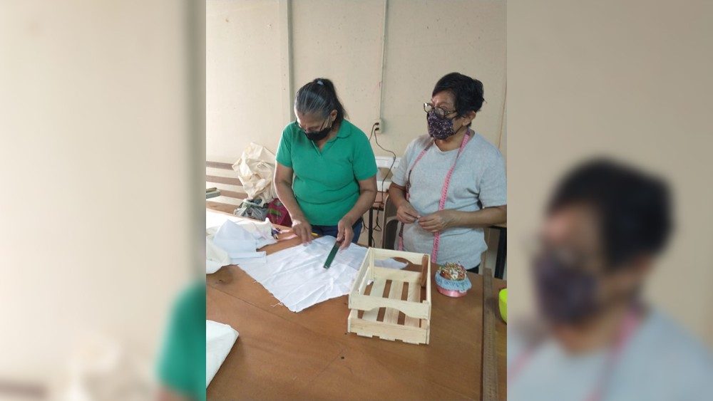 La canasta de madera es ensamblada por un adulto mayor artesano de Cartago.  Un grupo de costureras de La Milpa de Heredia confeccionaron los cobertores, guiadas por las Hermanas Scalabrinianas, quienes apoyan la labor de la Pastoral Migratoria.