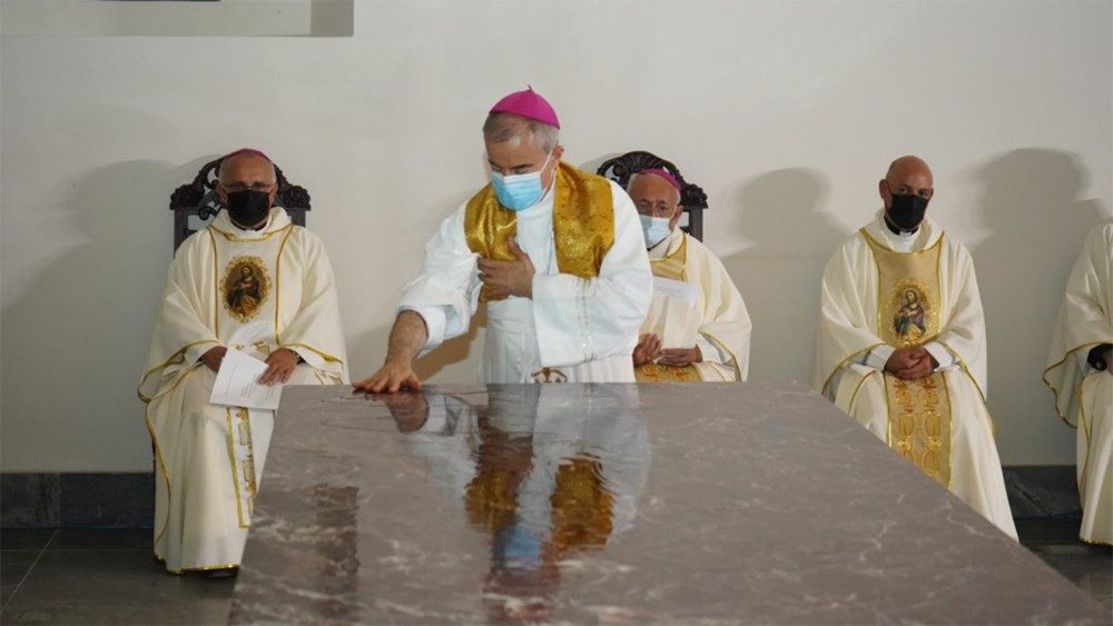 Luego de las letanías el Arzobispo extendió sus manos para la oración de dedicación. Hay que resaltar que en la mesa del altar se encuentra una reliquia del Beato Carlos Manuel Rodríguez. “Este edificio hace vislumbrar el misterio de la Iglesia, a la que Cristo santificó con su sangre…”, pronunció durante el ritual. Fue entonces que el Arzobispo se despojó de la casulla, tomó el gremial y vertió el santo crismal -óleo consagrado- por todas las áreas de la mesa del altar. Acto seguido, Mons. Alberto Figueroa Morales, Obispo Auxiliar de San Juan, procedió a ungir cada columna de la nave central del templo. Un momento místico aconteció cuando se encendió el brasero para quemar incienso justo en medio de la mesa del altar y en pocos segundos todo el templo quedó aromatizado por la pequeña columna de humo. Tras revestir el altar y encender cada candelabro continuó la Santa Misa.