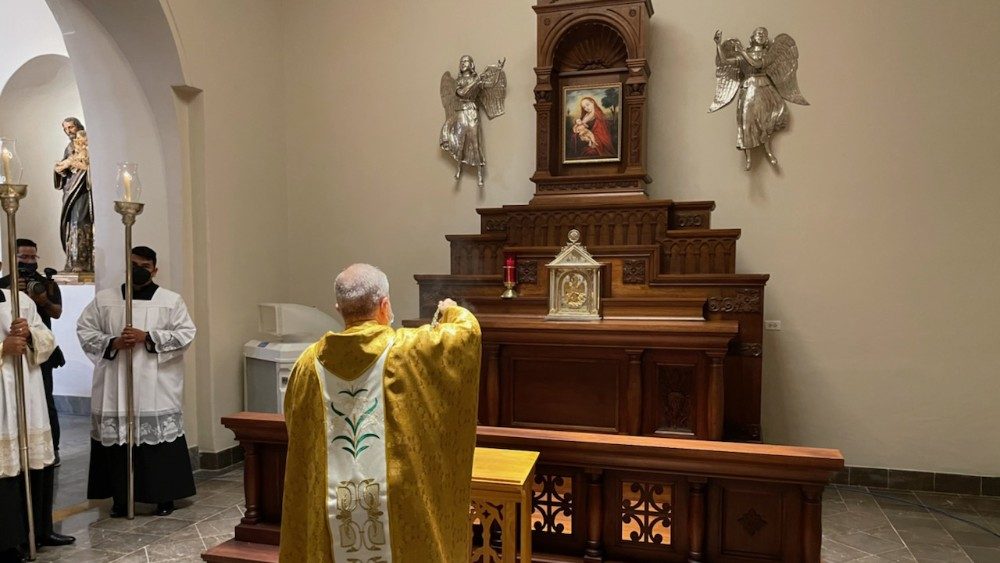 El Arzobispo Metropolitano asperjó con agua bendita al pueblo, el nuevo altar y el retablo de la capilla de Belén, en la parte frontal derecha del templo. Durante su homilía, reconoció y agradeció la labor durante los 19 años de reconstrucción de Ricardo González, el Arquitecto Jorge Rigau, los trabajadores, los generosos benefactores y voluntarios. “A todos les damos las gracias de todo corazón por hacer realidad que nos podamos seguir reuniendo en este templo dedicado a San José que es una de las cunas de la civilización puertorriqueña para alabar a Dios. […] Debido a la pandemia lamentablemente muchas personas no han podido venir a esta misa de reapertura y rededicación de este templo.”, apuntó el prelado. Explicó que el Salmo leído dicta que la misericordia de Dios es como un edificio eterno. “Este edificio en el que estamos, ahora restaurado, nos recuerda la eterna misericordia De Dios”.