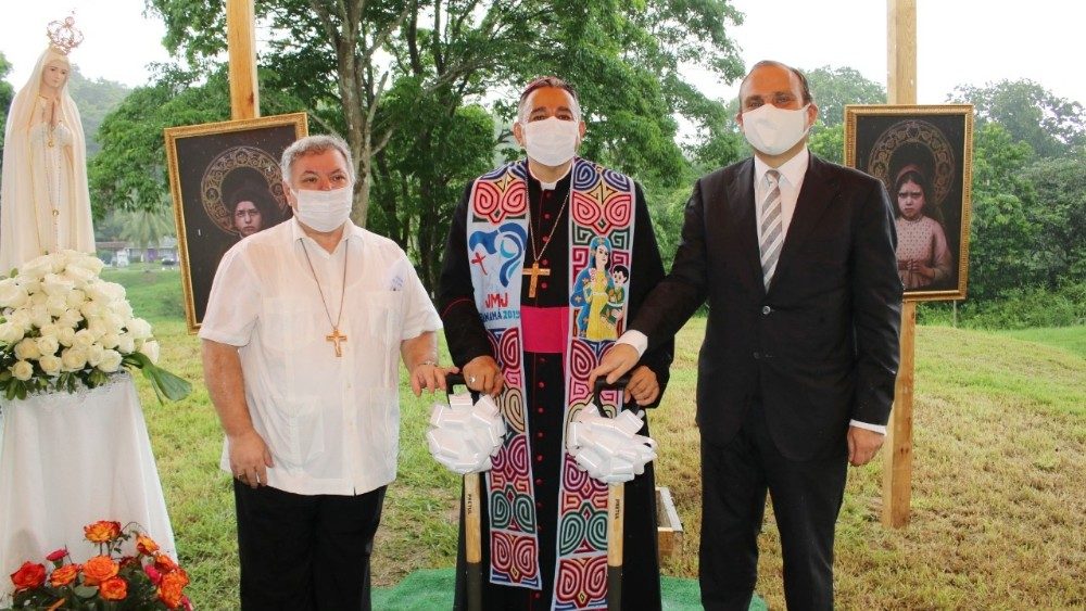 Al colocar la primera piedra de la Capilla, informa un comunicado de prensa, el Arzobispo de Panamá también colocó una pequeña imagen de Nuestra Señora de Fátima y una estampa de San José, para acompañar la construcción del lugar de culto y a quienes peregrinarán allí “en búsqueda de paz”.
