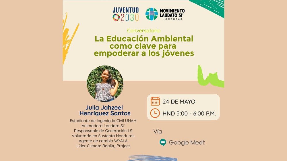 El miércoles 24 de mayo a las 17:00 realizan el conversatorio “La Educación Ambiental como clave para empoderar a los jóvenes”, con la participación de Julia Jahzeel, responsable de Generación Laudato si’.