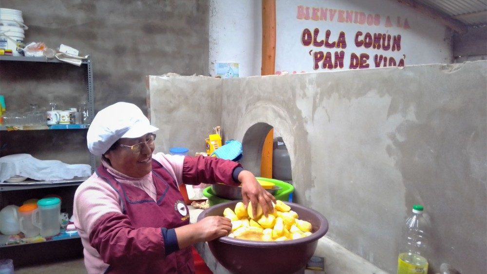 “Pan de Vida, es el pan que se comparte con los que menos tienen”, dice María Ataucusi, una madre migrante de Huancavelica quien, junto a cerca de medio centenar de mujeres, conforman la cocina comunitaria “Pan de Vida”, en el joven barrio de Saños Chaupi, distrito El Tambo en Huancayo, surgido durante la pandemia por la Covid-19 y que hoy se perfila como un medio de ayuda social y aprendizaje de cuidado del medio ambiente.