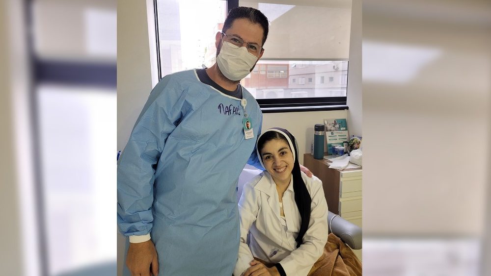 "La hermana Grazielle hoy, después de esta enfermedad tumoral, es alguien que da más sentido a cada momento. Sabemos que de todas formas nuestra vida está en manos de Dios, independientemente de si tenemos una enfermedad o no, nadie sabe lo que nos deparará el mañana. Así que vivir el hoy con intensidad, sabiendo que hoy mi vida está destinada a ser una misión, en todo lo que sucede, tiene mucho más sentido. Me doy cuenta de que mi vida tiene sentido en cada momento; cada día tiene sus retos y su belleza y merece ser vivido con intensidad. Creo que ese es el deseo de Dios para nosotros: que nuestra vida esté cada vez más centrada en Él. Y cuando vivimos una experiencia como esta, sabemos que también tiene sentido. Y si pudiera dejar un mensaje para quienes recorren este mismo camino, sería realmente ponerse en manos de Dios, intentar ser más sensibles a su presencia, porque Él está mucho más cerca de las personas cuando son más frágiles y conscientes de su momento de enfermedad".