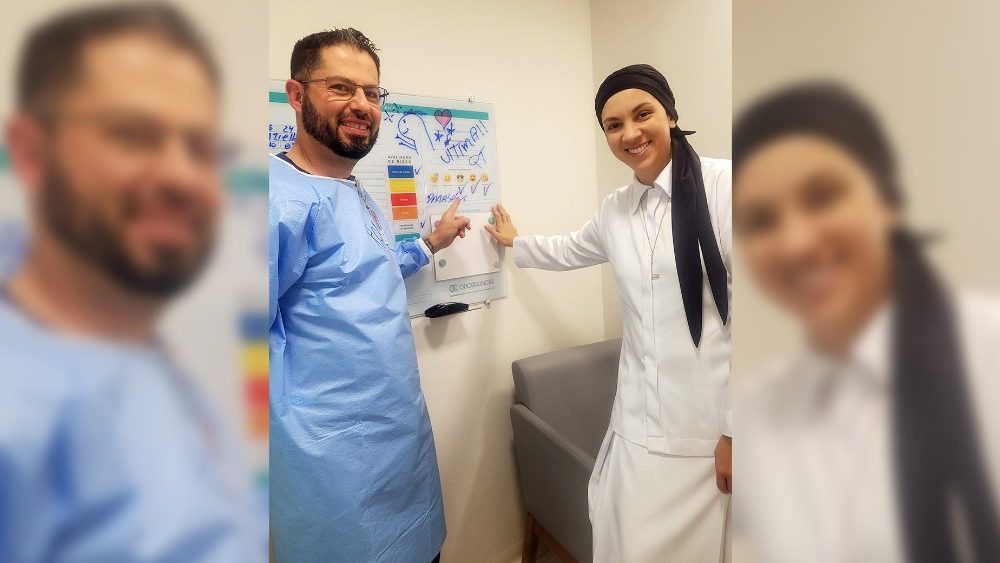 La hermana Grazielle, cantautora católica de 42 años, oriunda del municipio de Volta Redonda, Río de Janeiro, es máster en Administración de Empresas en el área de Finanzas, pero tuvo que reorganizar su vida cuando descubrió que tenía cáncer, mientras aún vivía en Bauru, São Paulo, y trabajaba como pro-rectora administrativa de Unisagrado, una de las instituciones privadas de enseñanza superior más tradicionales de Brasil. En enero de este año se trasladó a San Pablo capital y hoy se desempeña como ecónoma de la Provincia Brasileña del Sagrado Corazón de Jesús, de los Apóstoles del Sagrado Corazón de Jesús. El tratamiento, que ya completó, consistió en tres quimioterapias, una cirugía para extirpar el tumor y tres quimioterapias adicionales. La actual fase de seguimiento de su caso está relacionada con una deficiencia genética, que puede incluso haber desarrollado el tumor.