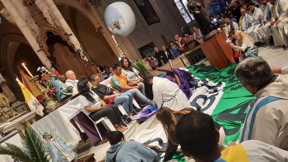 La misa fue presidida por monseñor Oscar Ojea, obispo emérito de San Isidro, y contó con la participación de miles de jóvenes que asisten a los centros de la institución. Estos centros ofrecen una respuesta integral a situaciones de vulnerabilidad y/o consumo problemático de sustancias psicoactivas, priorizando a la persona y sus cualidades. Los jóvenes, movidos por un profundo afecto al Papa Francisco, llenaron el templo mariano, desafiando la lluvia intermitente, con redoblantes, canciones, banderas y carteles.