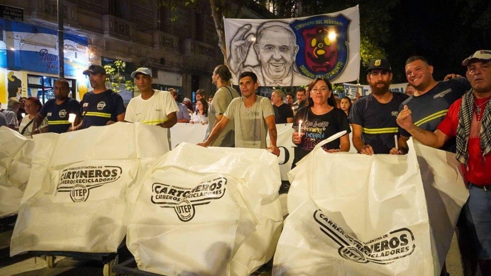 La procesión que era encabezada por los cartoneros (recicladores) tenía como lema: “amor con amor se paga”, fue una expresión de cercanía del pueblo argentino por el Papa Francisco. También se escuchaban cánticos de “Francisco querido el pueblo está contigo”.