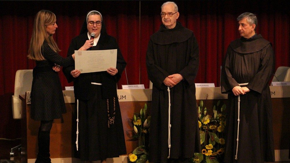 La fiesta llegó a término cuando el P. Michael Anthony Perry, Ministro General de la Orden de los Frailes Menores, otorgó el Doctorado Honoris Causa en Teología al P. Carlo Paolazzi O.F.M. quien respondió con la lección magistral "Alabanza al Dios Creador y al canto del Hermano Sol".