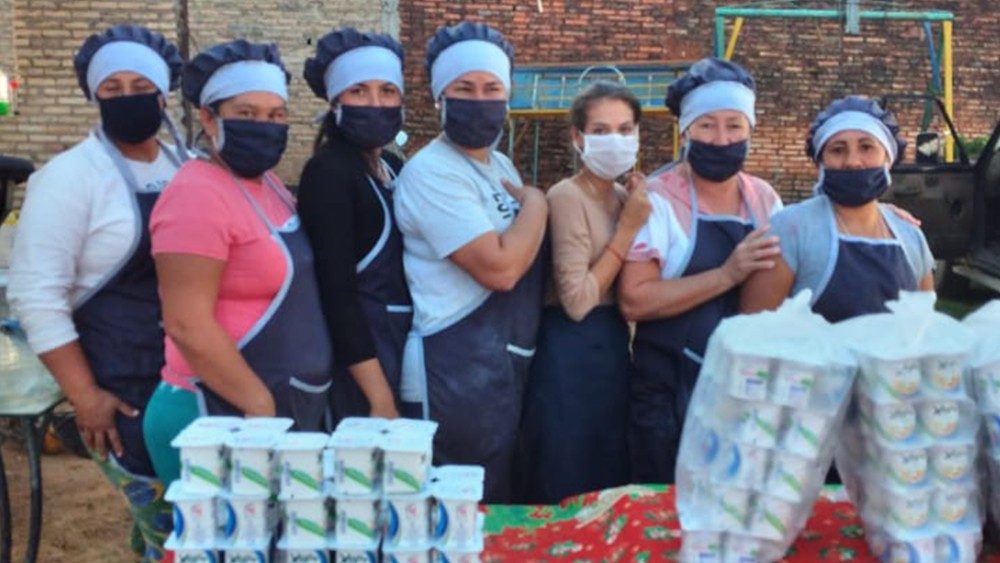 Myriam pone en evidencia que el trabajo de las mujeres es posible gracias al trabajo comprometido en red, redes organizadas que sirven a aquellos que no tienen recursos económicos: “Estas mujeres, desde que se decretó la cuarentena, con su trabajo en las ollas populares visibilizan el Reino de Dios: nadie ha pasado hambre en más de 65 días. Ochocientos niñas y niños, más de 3000 personas de manera diaria reciben una comida y/o una merienda. Como en la multiplicación de los panes, mucha gente ha compartido víveres de manera generosa y estas mujeres con mucha alegría y entusiasmo, entregan su amor y servicio y se han encargado de partir y repartir lo recibido de manera tal, que una vez más, el milagro de la multiplicación de los panes se ha actualizado. Se siente la presencia de la Divina Providencia que permite una verdadera comunión”.