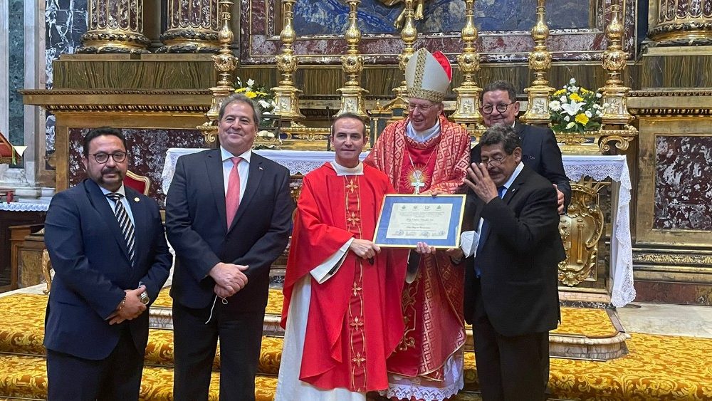 Otro momento emocionante tuvo lugar al final de la misa, cuando los embajadores de Centroamérica ante la Santa Sede otorgaron una placa a Fray Stefano Chechin, Presidente de la Pontificia Academia Mariana Internacional, "por las altas cualidades espirituales, académicas, conocimiento, devoción y difusión a nivel internacional de la figura de la Bienaventurada Virgen María", nombrándolo "Noble Amigo de Centroamérica".