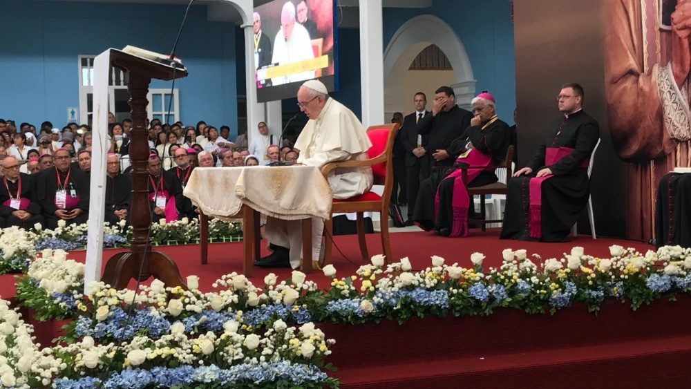 El Papa Francisco encontró a los religiosos, consagrados y seminaristas en el Colegio Seminario El Papa Francisco encontró a los religiosos, consagrados y seminaristas en el Colegio Seminario