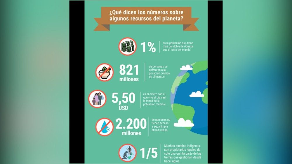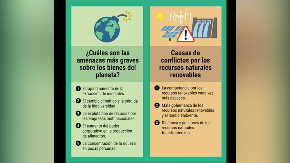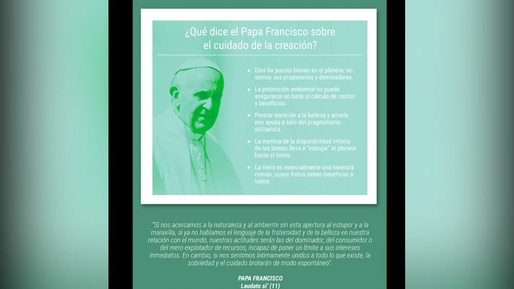 El mensaje del Papa Francisco sobre el cuidado de la creación es contundente: “Estamos exprimiendo los bienes del planeta. Exprimiéndolos”. Por eso alienta a todas las personas a que tomen conciencia de la grave “deuda ecológica”, fruto de la explotación de los recursos naturales y de la actividad de algunas multinacionales que “hacen fuera de sus países lo que no se les permite en los suyos”. Para el Santo Padre, esta situación es urgente: “Hoy, no mañana, hoy, tenemos que cuidar la creación con responsabilidad”.