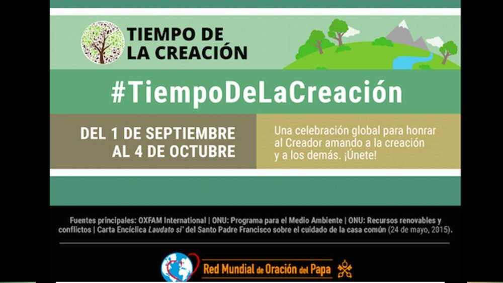 El Video del Papa de este mes de septiembre de 2020 se ha hecho público en la víspera de la Jornada Mundial de Oración por la Creación, enmarcada dentro del Tiempo de la Creación que se celebra del 1 de septiembre al 4 de octubre. Se trata de un video en el que el Papa Francisco expresa su Intención de Oración de este mes de septiembre, en la que llama a cuidar los recursos del planeta con responsabilidad y a que se compartan de manera justa y respetuosa.
