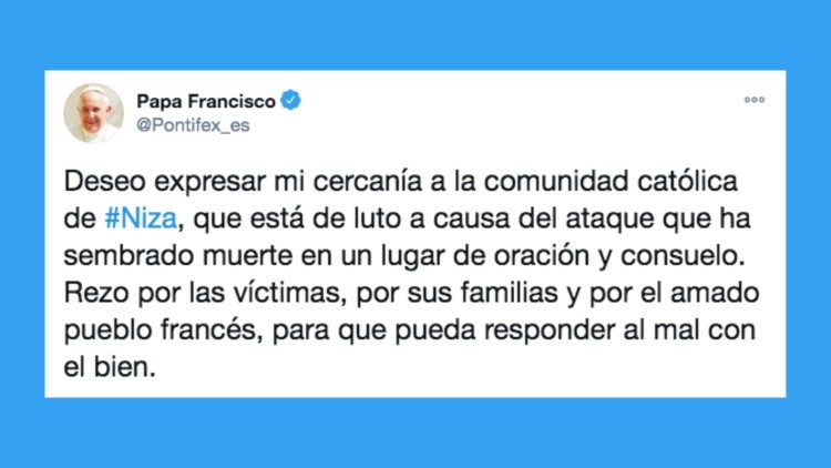 Tal y como informó la Oficina de Prensa de la Santa Sede, el Papa Francisco se mostró cerca de las familias de los asesinados y del país: "Que cese la violencia" y "que el querido pueblo francés pueda reaccionar unido al mal con el bien". Por su parte, los obispos franceses también expresaron su dolor y pidieron repique de campanas en toda Francia ese mismo día a las 15.00 horas. Además, el Pontífice mostró su cercanía a las víctimas y familiares a través de un tweet en su cuenta Oficial @Pontifex: