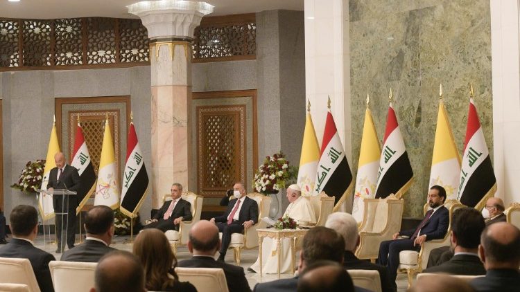 Encuentro del Papa Francisco con las Autoridades, la Sociedad Civil y el Cuerpo Diplomático en el Palacio Presidencial de Bagdad