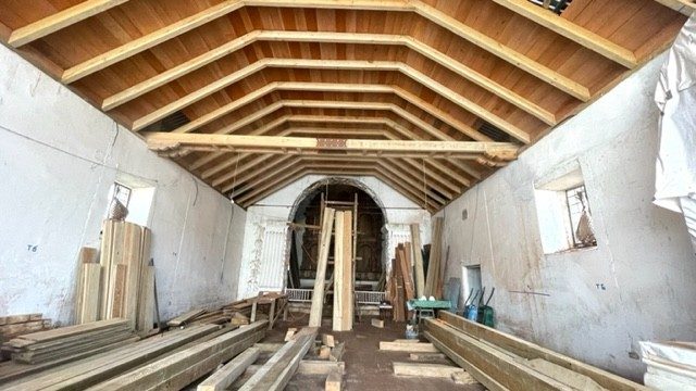 El obispo explicó además que hay tres etapas en su construcción o restauro, la primera es la cúpula y el techo, y se ha comenzado a trabajar allí, con el dinero del Pontífice, porque es urgente, se está cayendo.