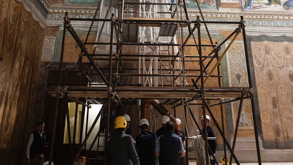 Los preparativos en la Capilla Sixtina para el Cónclave