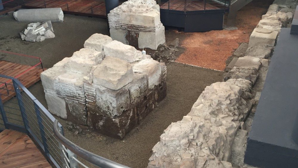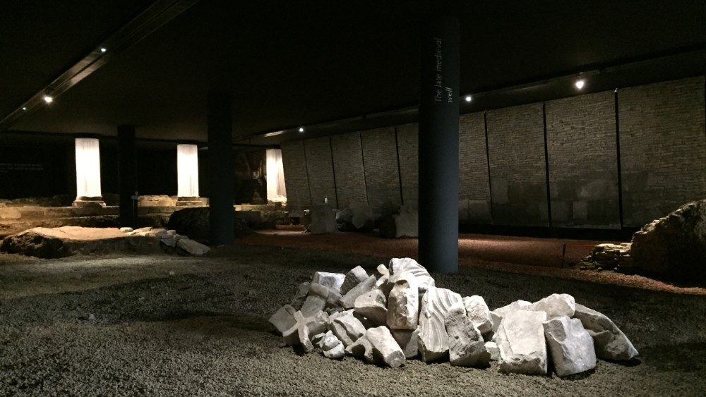 El proyecto definitivo ha conllevado, entre otras cosas, el completamiento del restauro y de la limpieza de los muros antiguos; el arreglo de las superficies del pavimento, de las paredes y del cielorraso y el potenciamiento del equipamiento didáctico. Los edificios sacados a la luz representan la densa secuencia de instalación que en la segunda mitad del siglo IX, con la construcción de los muros protectores, habrían visto nacer la llamada Iohannipolis, del nombre del pontífice fundador Juan VIII. Entre los mármoles se han encontrado partes de sarcófagos, mientras que en lo que queda del edificio más antiguo de la zona de excavaciones, que se puede datar entre el final del siglo V y comienzos del VI, se reconoce probablemente una de las “casas para los pobres” hecha construir por el Papa Símaco.