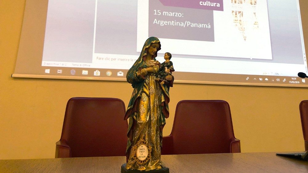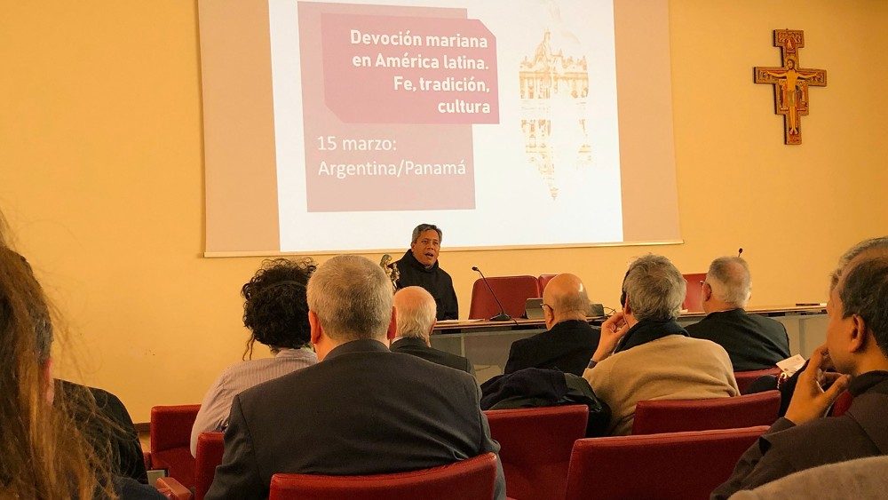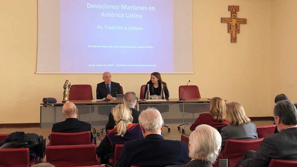 “Este Ciclo de Conferencias sobre la devoción a la Virgen María busca profundizar la fe, la tradición y la cultura, pero también el encuentro, que es el encuentro con Cristo, el encuentro con el Evangelio, el encuentro con Dios, y ahí la gente de América Latina se reconocieron poco a poco en la Santísima Virgen”, lo dijo el P. Agustín Hernández Vidales, O.F.M., Vicerrector de la Pontificia Universidad Antonianum de Roma, en la inauguración del Ciclo de Conferencias sobre la “Devoción Mariana en América Latina: Fe, tradición y cultura”, evento organizado por la Pontificia Academia Mariana Internacional en colaboración con la Pontificia Universidad Antonianum, y las Embajadas Latinoamericanas acreditadas ante la Santa Sede. Están previstas 8 jornadas que van del 15 de marzo al 25 de mayo de 2019.