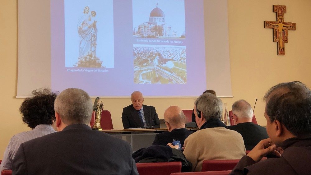 Las cinco Conferencia del Episcopado Latinoamericano, afirmó el Vicerrector del Antonianum, a partir de Rio de Janeiro hasta Aparecida han dedicado un papel especial a la Santísima Virgen. “Concretamente en Santo Domingo se decidió buscar cual es el rol y la presencia de María en la vida del pueblo, qué papel han tenido estos Santuarios y como la gente se ha reconocido en la presencia de María, en la historia, en la evangelización, en la cultura de los pueblos latinoamericanos”. En este sentido, agregó el religioso franciscano, nos parece fundamental colaborar con el Cuerpo Diplomático acreditado ante la Santa Sede, para profundizar estas devociones; serán precisamente ellos, los señores Embajadores, los que van a presentar la presencia mariana, la piedad mariana, los temas marianos y los santuarios marianos de sus respectivos países.