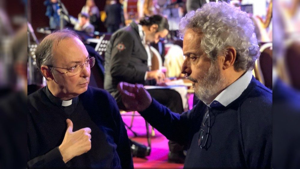 También este año, artistas sensibles al proyecto, han puesto a disposición su arte de forma totalmente gratuita, para hacer de este evento una "meditación en la música". En el 2015 el Maestro Daniele Oren y en el 2016 el premio Oscar Ennio Morricone subieron al podio en el Aula Pablo VI. Este año, dos autores del cine subieron al podio: Nicola Piovani, ganador del Oscar en 1999, con un conjunto de extractos de las bandas sonoras de “La vida es bella” y de “Pinocchio”, dirigió la Orquesta del cine italiano; por otro lado, el Coro de la Diócesis de Roma estuvo dirigido por Monseñor Marco Frisina, quien propuso temas tomados de la música cinematográfica escrita para televisión e inspirados en grandes figuras de los Papas, como Pablo VI y Juan XXXIII, y de los Santos, desde los Santos Clara y Francisco de Asís hasta San Felipe Neri y San Juan Bosco.