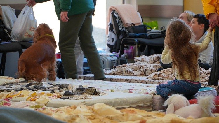 12:35 El cardenal Czerny en los primeros centros de acogida de refugiados ucranianos. Son numerosos lo niños que huyen de la guerra, para ellos juegos y bebidas calientes.