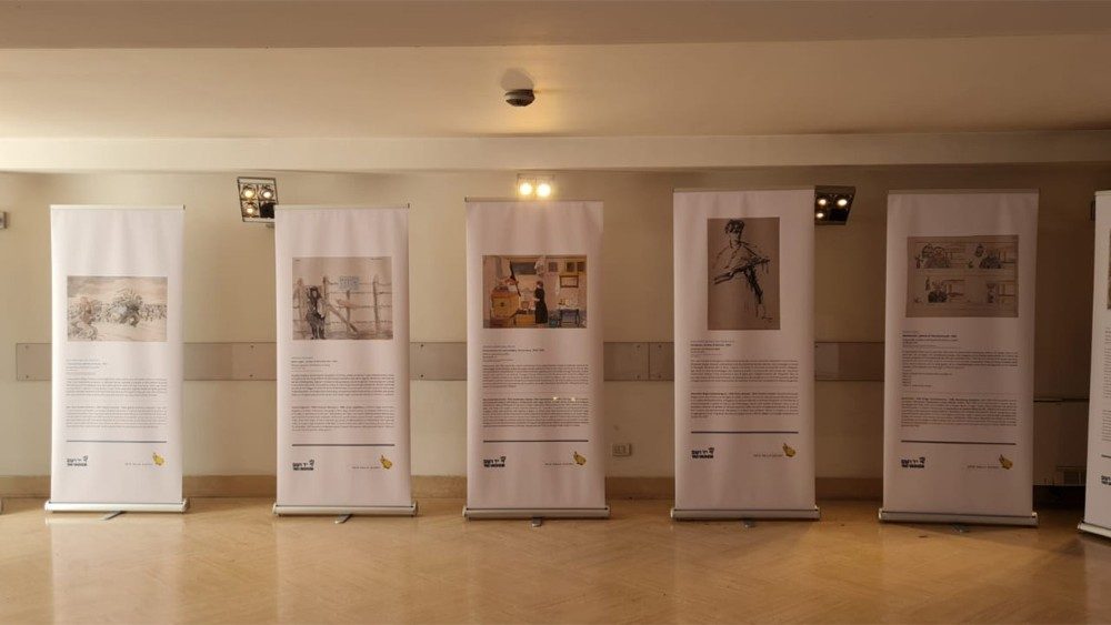 El desamparo de los refugiados, la imposibilidad de escapar, la súbita evacuación de sus hogares, el pánico, los días de frío, la cola para conseguir comida, la inexorable condena a muerte y, a pesar de todo, la solidaridad humana: estos temas se suceden en las obras reproducidas en paneles -de 50 x 70 cm- expuestas durante 15 días en las salas de la Universidad del Papa donde, esta mañana, ha tenido lugar la inauguración de la exposición. Intervinieron, entre otros, el embajador de Israel ante la Santa Sede, Raphael Schutz, el secretario general de la Conferencia Episcopal Italiana, monseñor Stefano Russo, la poetisa y testigo de la Shoah, Edith Bruck, el biblista monseñor Antonio Pitta y el rector de la PUL, Vincenzo Buonomo.